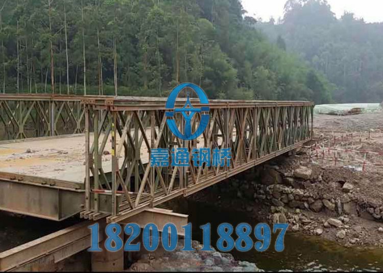 裝配式鋼橋(又稱貝雷鋼橋)有結構簡單、構件輕巧、運輸方便、組合靈活、架設快速、拆裝方便、構件可重復利...